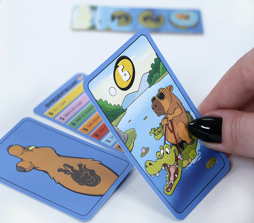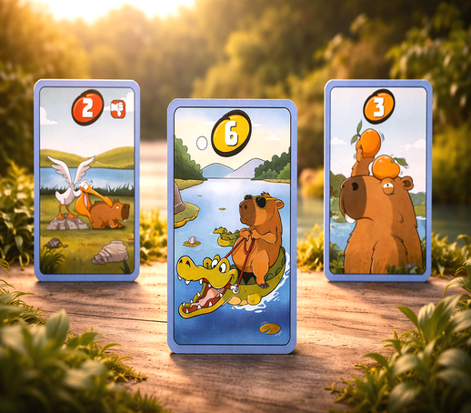 Voor uitgever 999 Games maakte ik de illustraties voor het kaartspel Swapybara. In dit snelle en toegankelijke spel ruilen spelers elke beurt kaarten met elkaar, met als doel uiteindelijk met de beste kaart te eindigen en de meeste punten te scoren.
