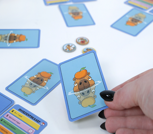 Tijdens het spelen probeer je je tegenstanders te slim af te zijn en ondertussen een stalen gezicht te houden. De capybara’s spelen daarbij natuurlijk de hoofdrol, en het was erg leuk om deze eigenwijze dieren veel karakter en humor mee te geven in de illustraties.