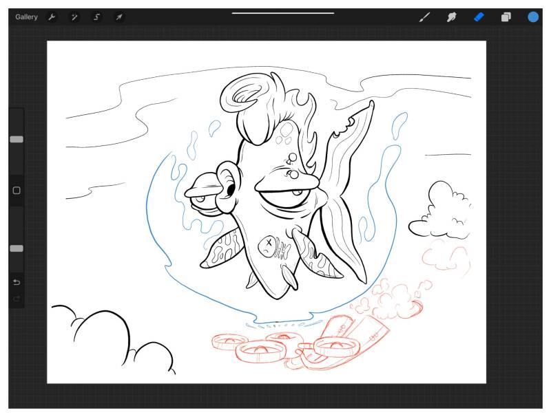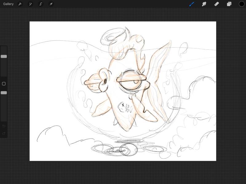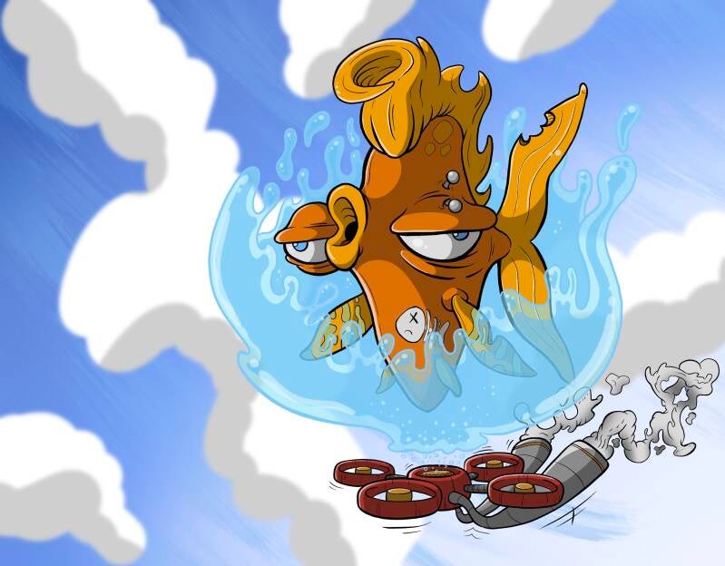 Deze schets is een ode aan onmogelijke ideeën. Want soms moet je jezelf afvragen: wat als een goudvis het luchtruim kiest?